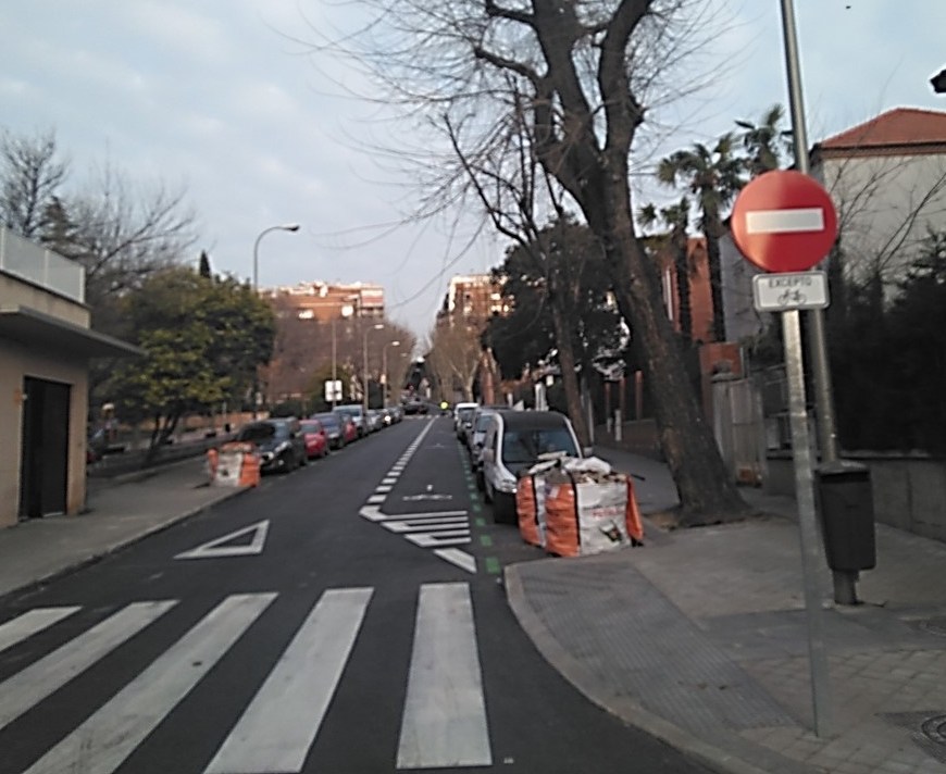 Sobre el carril bici de la calle Conde de Cartagena.