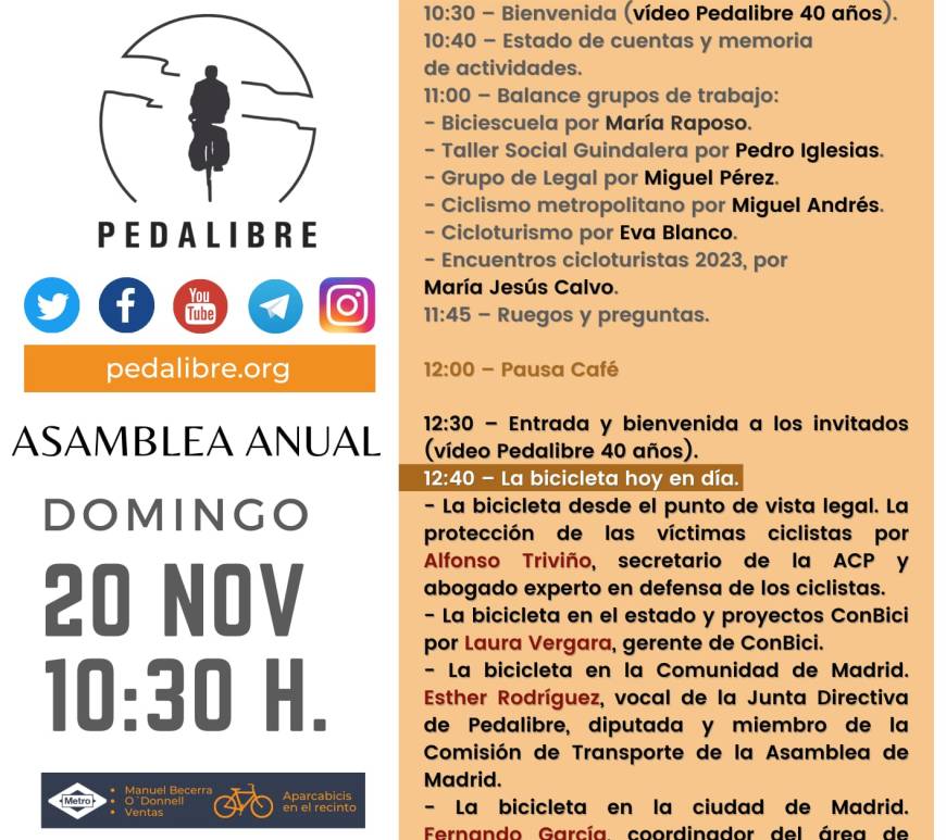 LA BICICLETA HOY EN DÍA (acto público) Continúa leyendo 40 aniversario de Pedalibre