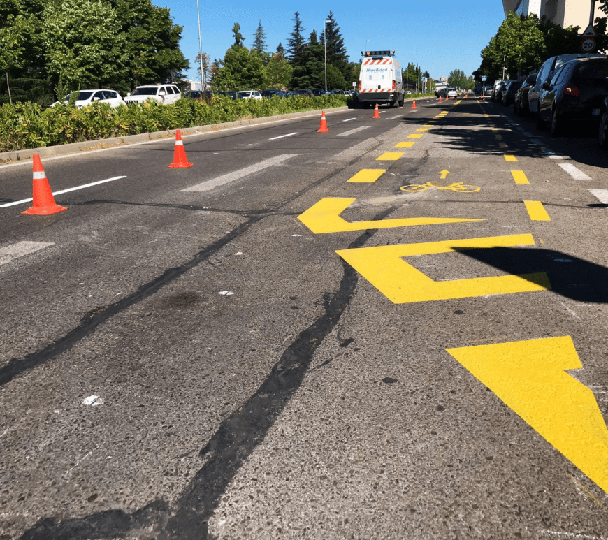 Test del carril bici provisional inaugurado en Madrid: coches a 70 km/h y en segunda fila